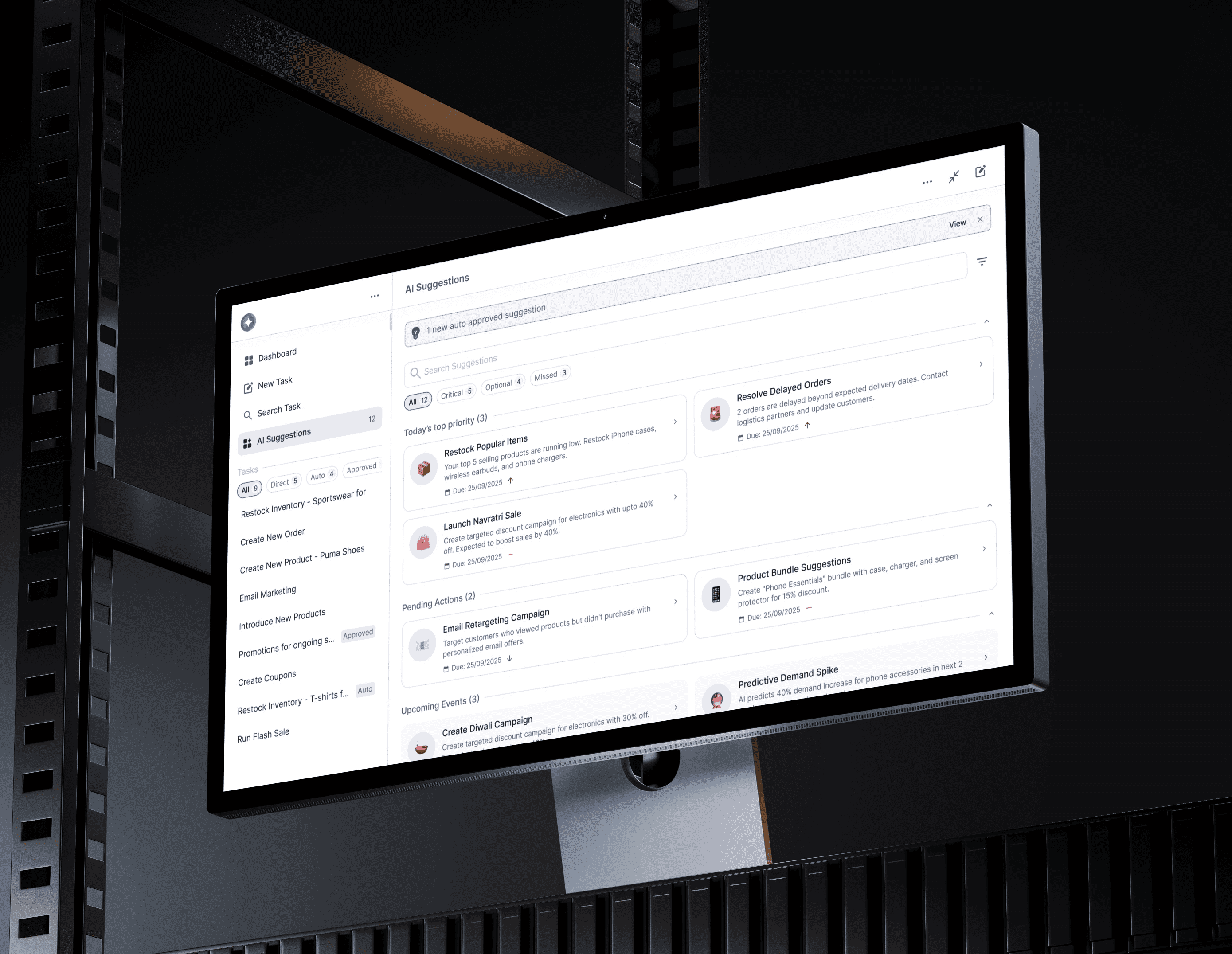 AI Sidekick (Supervised Autonomy): Shipped a conversational execution engine that actively performs complex tasks (creating products, orchestrating campaigns). It operates strictly on a "proposal → preview → approve" model to guarantee user trust.