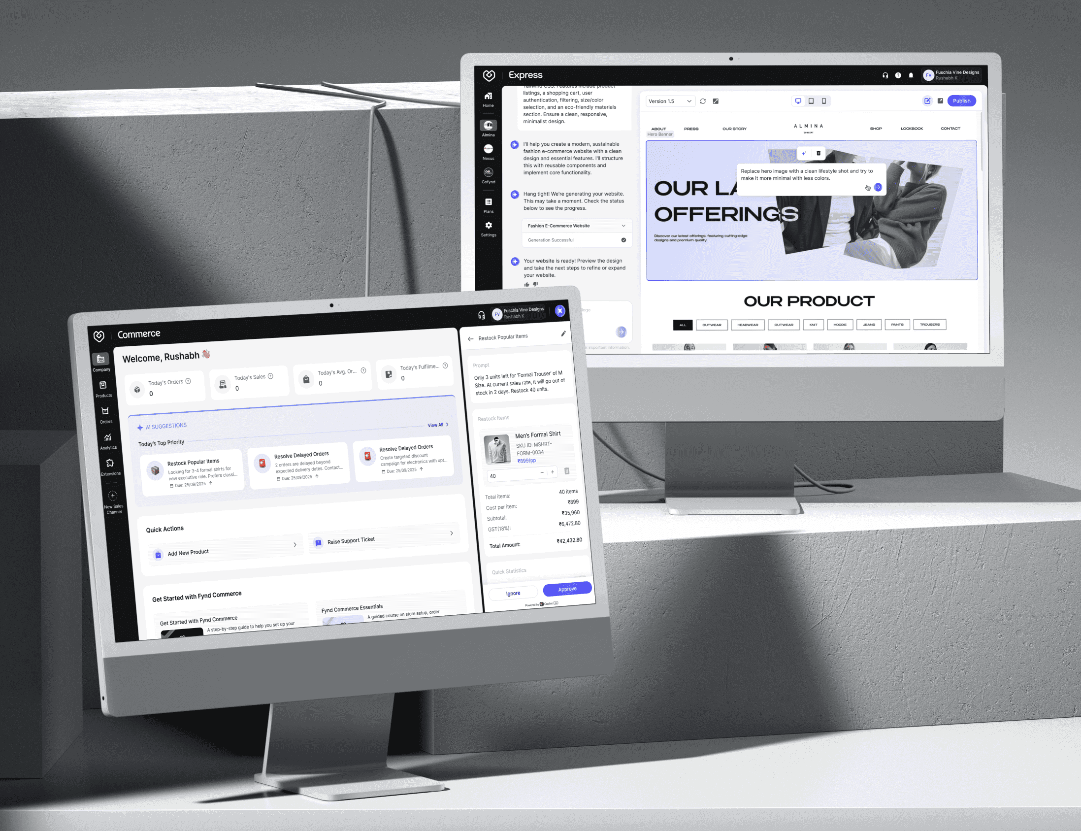 My role: Head of Design / Design DRI. I own the Fynd Commerce Platform end-to-end (across OMS, logistics, payments, catalog, storefronts, and extensions), with a focused charter to drive the platform's AI transformation layer.