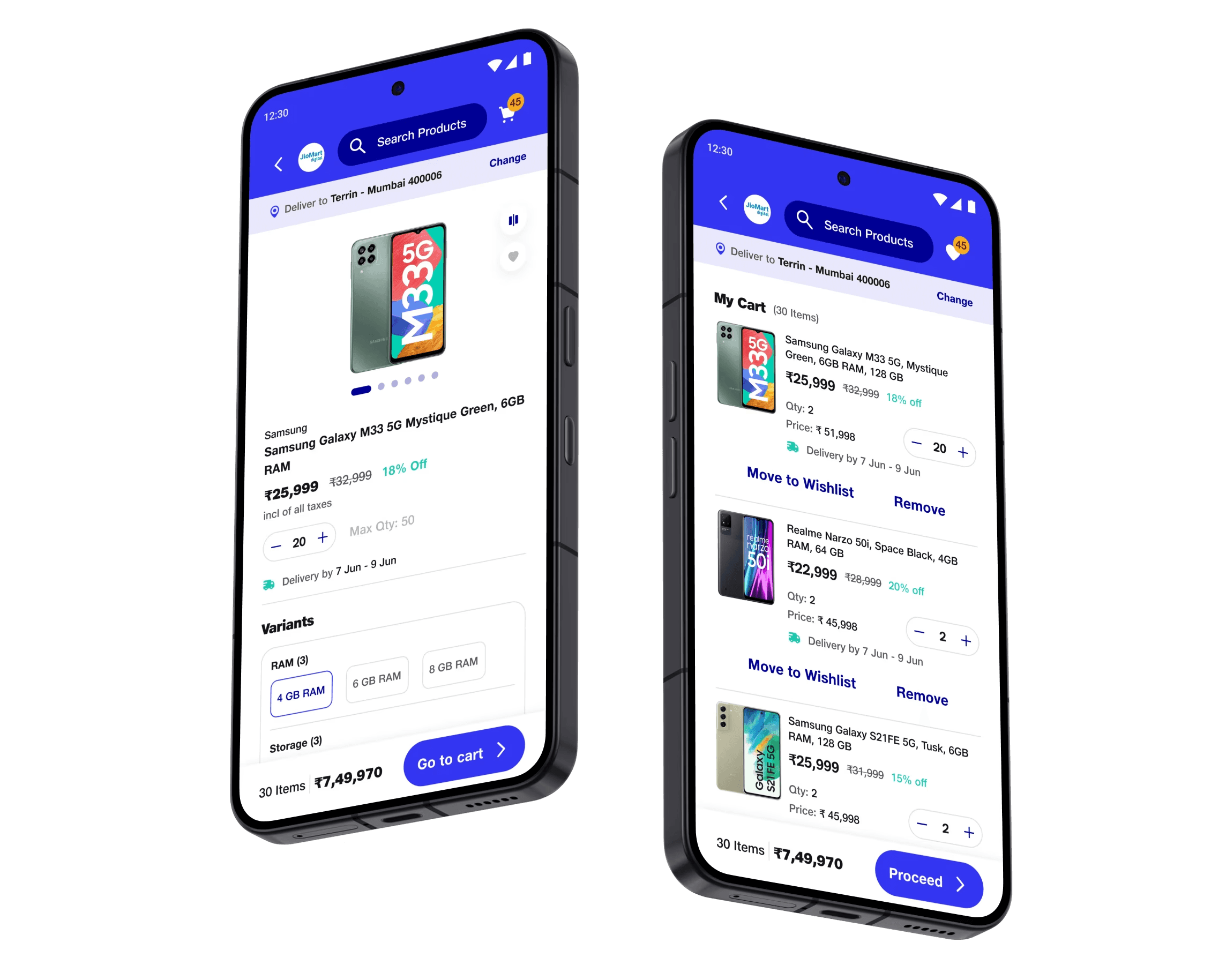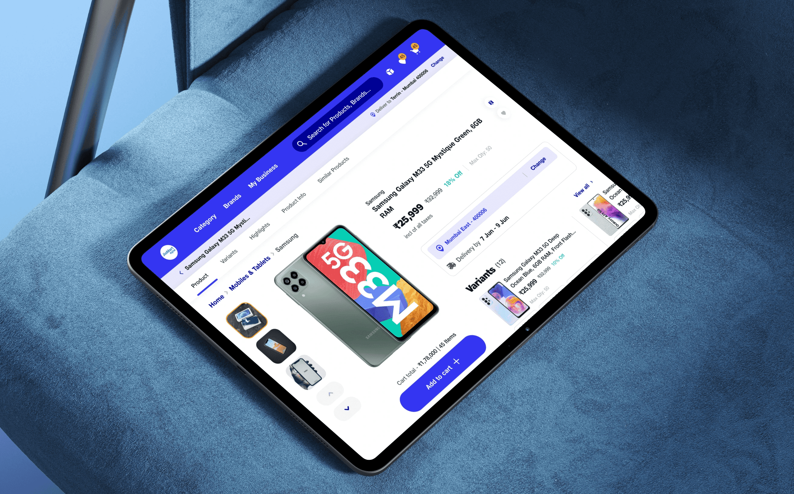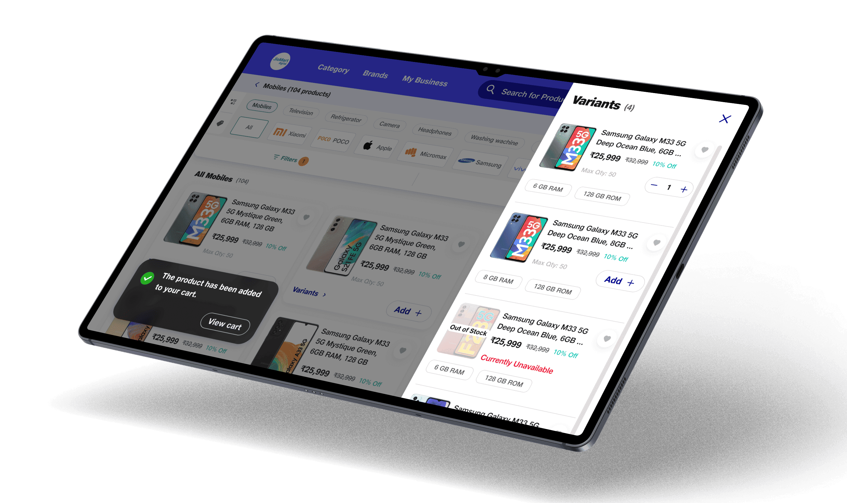 Designed the end-to-end B2B procurement app (Mobile + Tablet) for 3,000+ electronics retailers — directly enabling JioMart Digital's ₹1000 Cr revenue milestone.