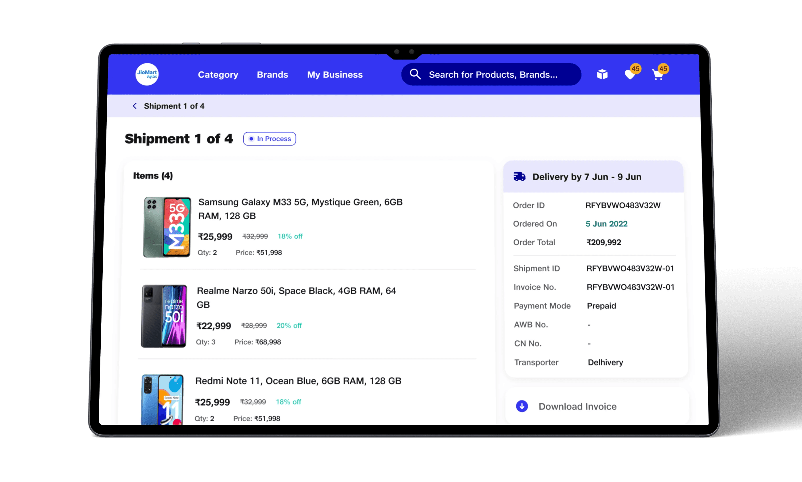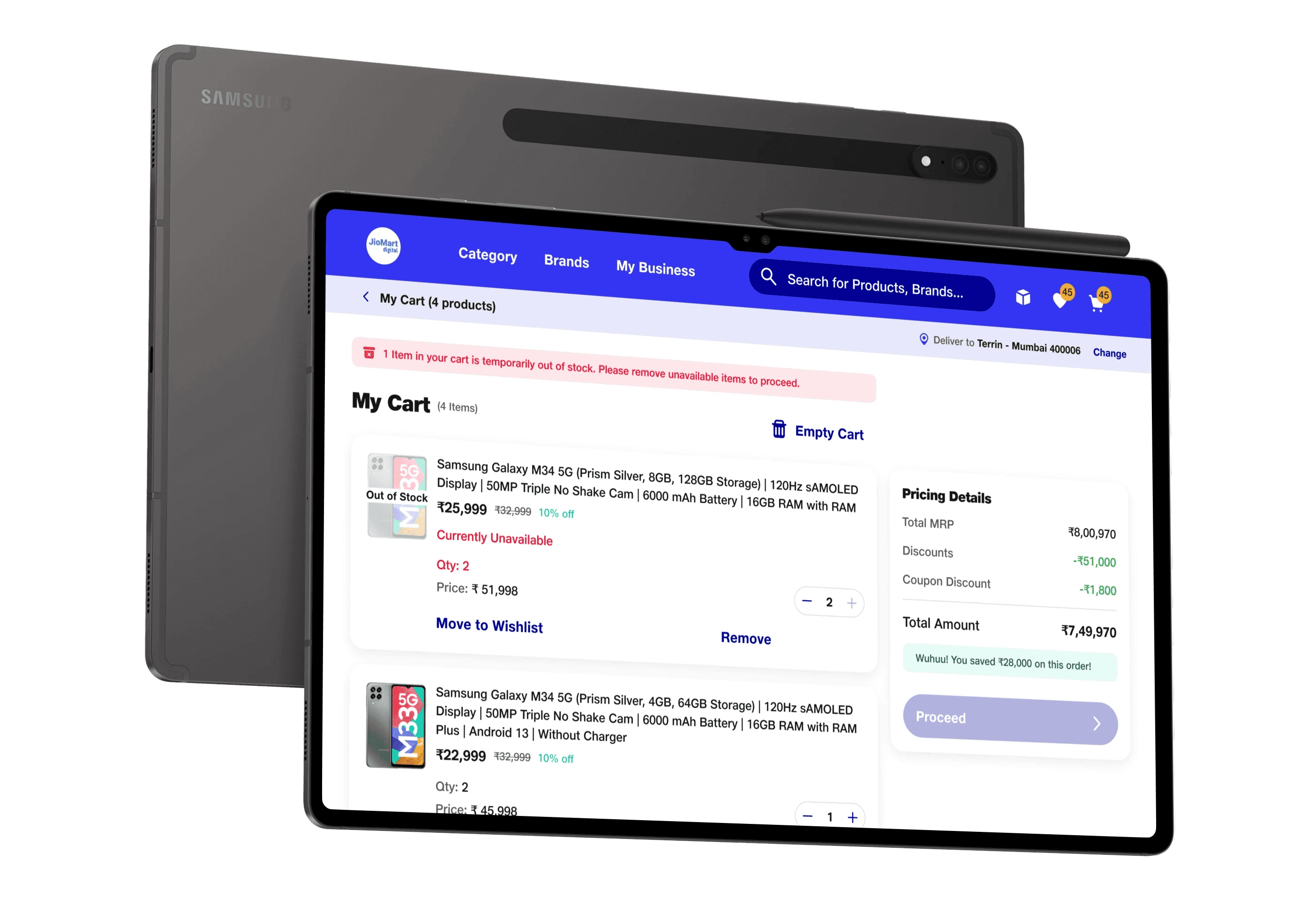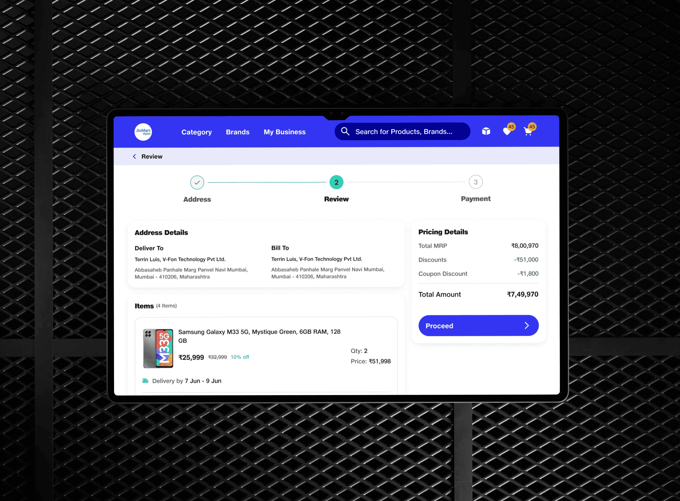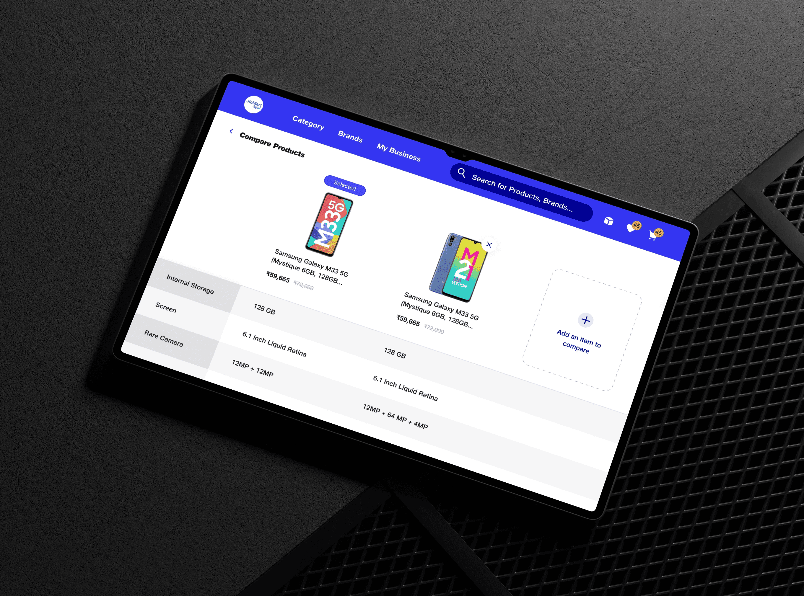 Designed the end-to-end B2B procurement app (Mobile + Tablet) for 3,000+ electronics retailers — directly enabling JioMart Digital's ₹1000 Cr revenue milestone.